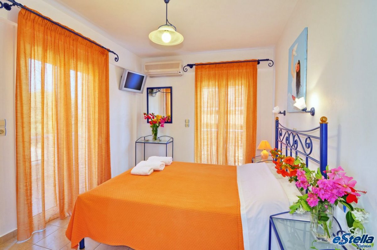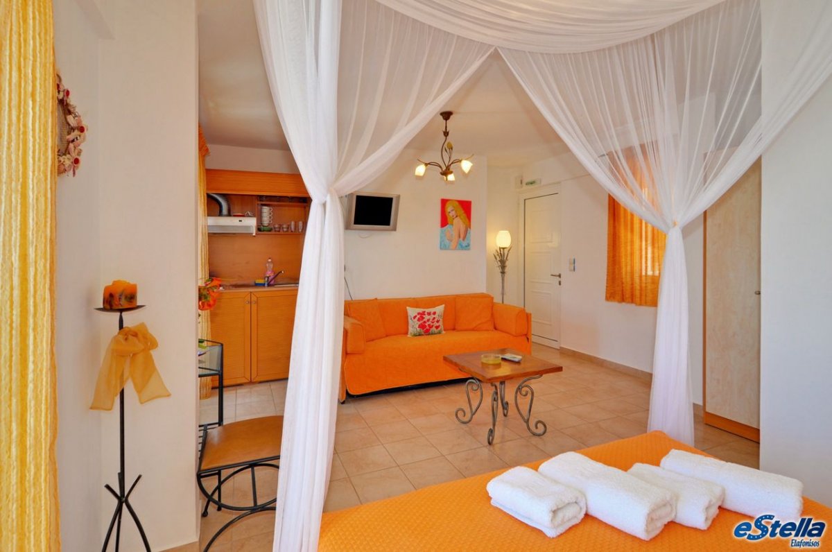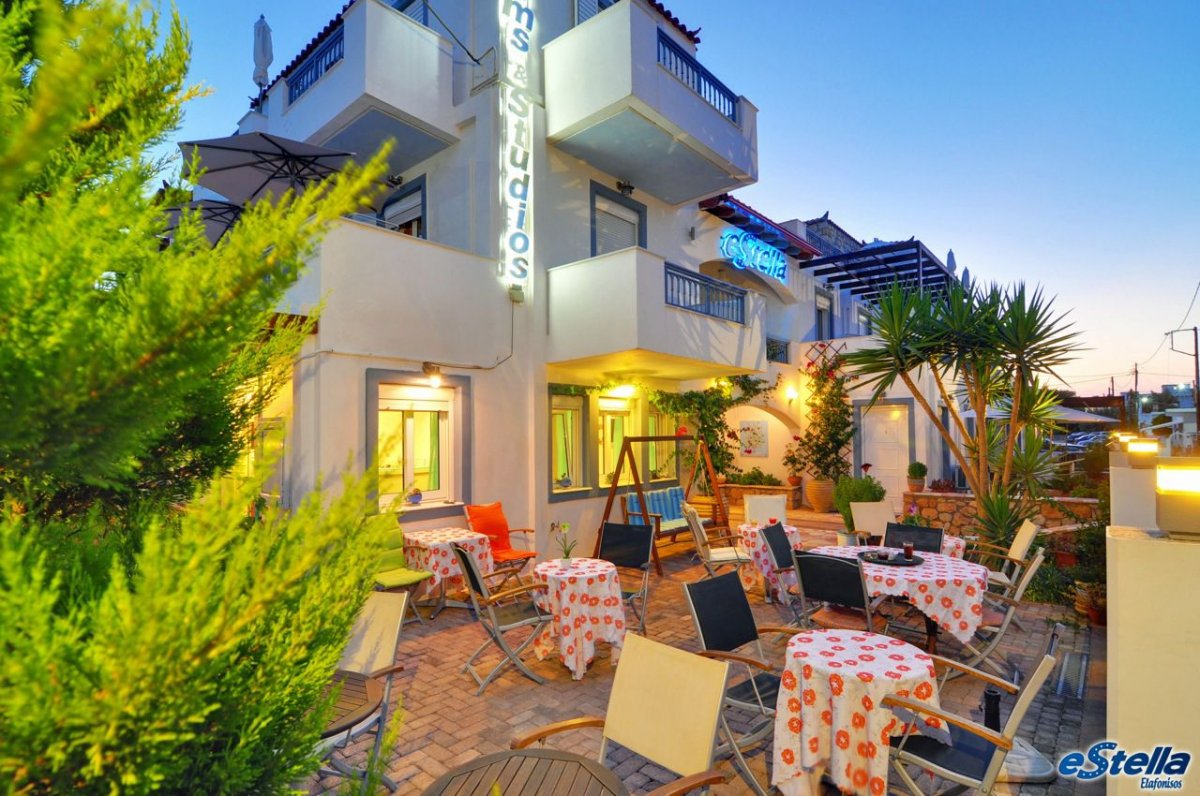 Το Εστέλλα βρίσκεται μπροστά στο λιμάνι της Ελαφονήσου, είναι ένα από τα πρώτα κτίρια που βλέπετε όταν αποβιβάζεστε στο νησί.